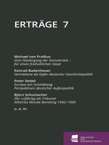 Mit ERTRÄGE 7 erscheint wieder ein Band, der Vorträge versammelt, die in der Bibliothek des Konservatismus (BdK) gehalten wurden. Die meisten von ihnen sind jüngeren Datums, nur in einem Falle fügte es sich, daß ein bereits früher gehaltener Vortrag nun auch in Schriftform an die Öffentlichkeit gegeben werden kann.