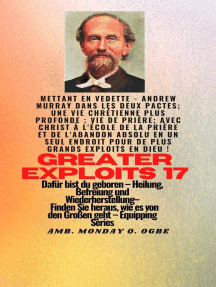 Greater Exploits 17 ist eine Fortsetzung von Greater Exploits 1 bis 16 mit mehr Details, mit - Andrew Murray in The Two Covenants; Tieferes christliches Leben; Gebetsleben; Mit Christus in der Schule des Gebets und der absoluten Hingabe an einem Ort für größere Taten in Gott!