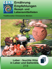 EBNS - Ernährungsberatung nach Syndromen - Rezepte- und Lebensmittellisten für die Ernährungstherapie der Traditionellen Chinesischen Medizin (TCM) bei Leber - feuchte Hitze in Leber und Gallenblase. Feuchtigkeit und Hitze ausleiten, Qi die Mitte in Bewegung bringen, Mi stärken. - heiß NEIN, warm WENIG/ NEIN, neutral/ erfrischend JA (sauer WENIG), kaltsalzig u bitter JA, sonst NEIN. Die Rezepte sollen das betroffene Syndrom unterstützen und durch guten Geschmack motivieren. Die Lebensmittel werden in Kategorien empfehlenswert, ja, weniger und nein angezeigt und helfen bei der Orientierung, wenn eigene Rezepte gekocht werden sollen.